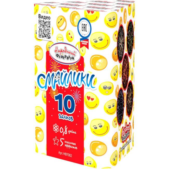 «Смайлики» — фейерверк радости и улыбок Праздник, который дарит улыбки Представьте себе небо, наполненное волшебством и сиянием. Батарея салютов «Смайлики» — это настоящий фейерверк радости, способный превратить любой момент в незабываемое торжество. Словно тысячи улыбок расцветают в небесах, даря зрителям незабываемые эмоции. Пять причин для радости Изысканная парча с серебряным мерцанием открывает представление, создавая атмосферу роскоши и праздника. Изумрудные георгины распускаются в небе, словно драгоценные камни, даря зрителям моменты истинного восхищения. Золотые пионы с трещащим эффектом наполняют воздух торжественностью и великолепием. Алые георгины добавляют представлению страсти и яркости, создавая неповторимую палитру красок. Белые вспышки завершают шоу ослепительным финалом, оставляя в памяти зрителей яркие впечатления. Технические особенности 10 мощных залпов создают яркое шоу Высота до 30 метров — впечатляющее зрелище Длительность 25 секунд — достаточно, чтобы захватить дух Пять уникальных эффектов — каждый момент неповторим Калибр 0,8 дюйма — оптимальное сочетание мощности и красоты Подарите себе и близким момент настоящего праздника! «Смайлики» — это фейерверк, который не просто освещает небо, а наполняет сердца радостью и счастьем. Пусть каждый залп станет символом вашего торжества, а яркие вспышки подарят улыбки всем присутствующим! Создайте незабываемое шоу, которое запомнится надолго и оставит в сердцах гостей тёплые воспоминания о самом счастливом дне.