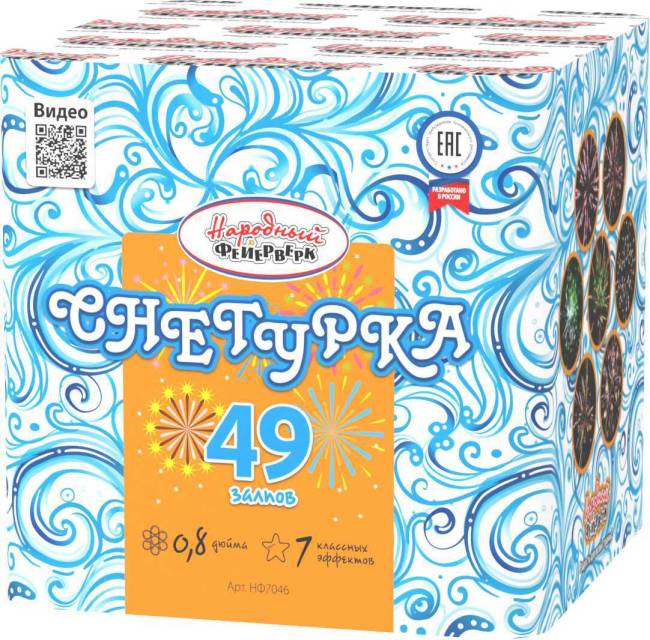 «Снегурка» — зимняя сказка в небесах Волшебство зимней ночи Представьте себе морозную ночь, когда само небо оживает, превращаясь в холст для самого прекрасного фейерверка. Батарея салютов «Снегурка» — это не просто пиротехническое шоу, это настоящая зимняя сказка, написанная огнями и искрами. Семь чудес небесного представления Первая глава представления открывается величественными серебряными кокосами, украшенными алыми жемчужинами, словно сама зима рассыпала по небу драгоценные камни. Вторая сцена — это серебряные кокосы с красными жемчужинами, окружённые золотым трещащим сиянием, напоминающим звон новогодних колокольчиков. Третья часть — нежные зелёные жемчужины в обрамлении мерцающих серебряных кокосов создают ощущение волшебства зимнего леса. Четвёртая картина — зелёные жемчужины в золотом трещащем обрамлении, словно звёзды решили устроить бал в ночном небе. Пятая сцена — лимонные жемчужины в серебряном сиянии, напоминающие солнечные лучи, пробивающиеся сквозь зимнюю метель. Шестая часть — лимонные жемчужины с золотым треском, создающие неповторимую симфонию света и звука. Грандиозный финал — голубые кометы, раскрывающиеся множеством трещащих хризантем, завершают представление феерическим аккордом. Технические особенности волшебного шоу 49 ярких залпов создают незабываемое представление Высота до 30 метров — настоящее зрелище в небе Длительность до 55 секунд — достаточно, чтобы захватить дух Семь уникальных эффектов — каждый момент неповторим Калибр 0,8 дюйма — оптимальное сочетание мощности и красоты Подарите себе и близким волшебный момент, когда небо становится частью вашей сказки. «Снегурка» — это возможность создать незабываемые воспоминания, которые будут согревать душу долгие годы. Пусть каждый миг этого небесного представления станет частью вашей истории, а зимнее волшебство останется в сердцах навсегда!