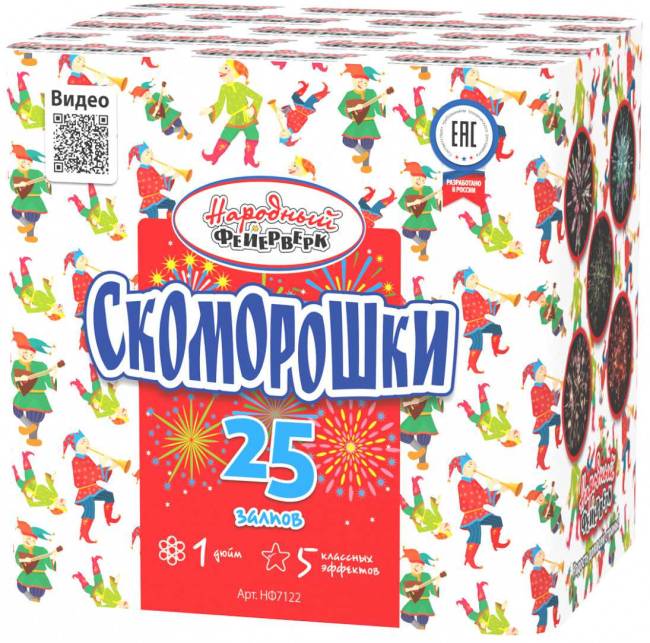 «Скоморошки» — весёлое представление в небесах Праздник, который зажигает звёзды Представьте себе яркое, залихватское представление, где само небо становится театральной сценой, а огненные всполохи — артистами народного гулянья. Батарея салютов «Скоморошки» — это настоящий карнавал света и цвета, который превратит любой праздник в незабываемое зрелище! Пять актов небесного представления Первый акт открывается яркими красными и зелёными волнами, которые, словно праздничные ленты, кружатся в серебряном мерцании, создавая атмосферу народного гулянья. Второй акт — это пурпурные и зелёные волны, украшенные серебряными хризантемами, напоминающими яркие костюмы скоморохов. Третий акт представляет собой серебряные волны с изумрудными жемчужинами, которые, словно драгоценные камни, рассыпаются по небосводу. Четвёртый акт — это парчовые волны с трещащими искрами, создающие ощущение настоящего праздника и веселья. Грандиозный финал — серебряные мерцающие ивы с красным жемчугом и золотыми искрами, которые завершают представление феерическим аккордом. Технические особенности 25 мощных залпов создают яркое и насыщенное шоу Калибр 1 дюйм — впечатляющая мощь каждого выстрела Высота до 35 метров — захватывающее зрелище для всех зрителей Длительность до 30 секунд — оптимальное время для полного погружения в праздник Пять уникальных эффектов — каждый момент неповторим Подарите себе и близким настоящий праздник с «Скоморошками»! Этот фейерверк не просто украсит небо — он наполнит сердца радостью, весельем и незабываемыми впечатлениями. Пусть каждый залп станет символом вашего торжества, а яркие вспышки подарят улыбки всем присутствующим! Создайте атмосферу настоящего народного гулянья, где каждый миг наполнен весельем и волшебством. «Скоморошки» — это фейерверк, который заставит ваше сердце биться в такт с ритмом праздника!