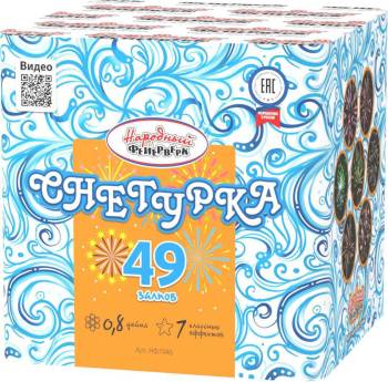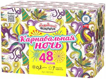 В батареи салютов "Подарок", для вас подготовлено 25 залпов из внушительного по своим размерам 1.2" (30,5 мм) калибра, заряженных позитивом и впечатляющими пироэффектами. Раскидистые и мерцающих фигуры из огненных пальм сменятся ослепительными и звонко трещащими звуковыми раскатами. Разноцветные огни стробоскопов растянутся в небе длинными шлейфами, которые неприменно подарят вашему празднику позитивное настроение. Батарея салютов "Подарок"- заметно выделит и выгодно подчеркнет любой из ваших праздников. Эффекты: Ряд 1: голубая хвостовая парчовая корона с голубым жемчугом и золотым стробоскопом; Ряд 2: зеленый хвост к иве с фиолетовым жемчужно-зеленым стробоскопом; Ряд 3-4: красный хвост к иве с красным стробоскопом; Ряд 5: красный хвост трескучей ивы с фиолетовой жемчужиной